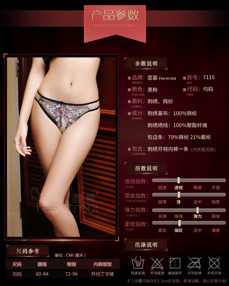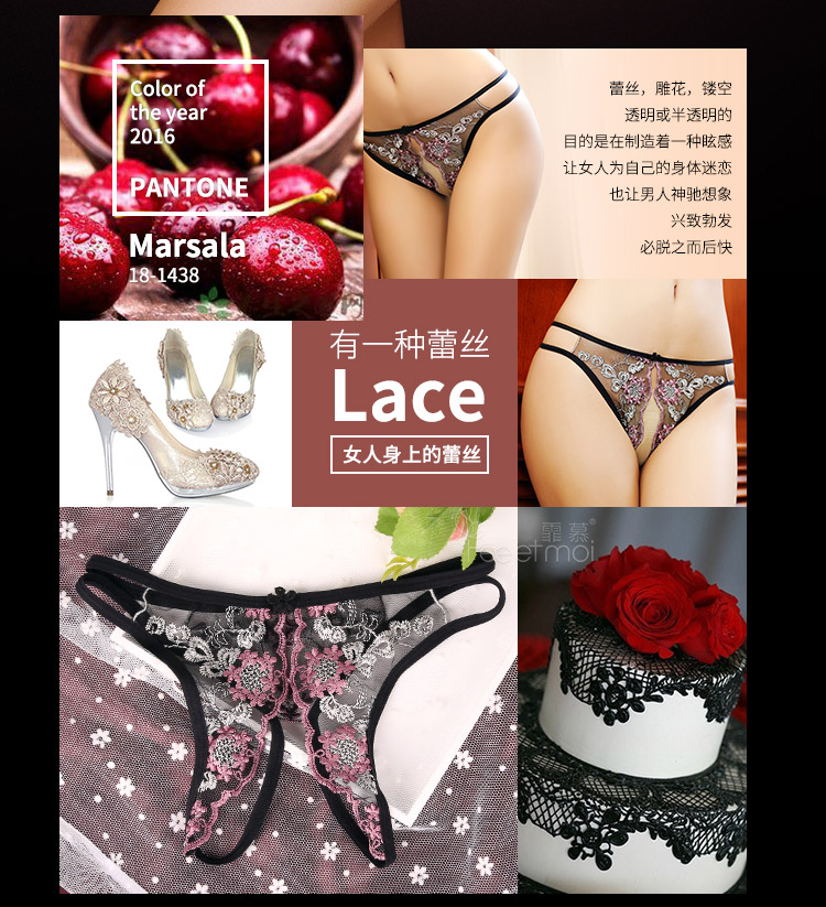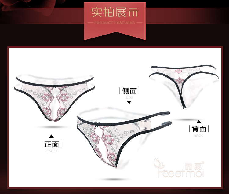 當前位置: 首頁 > 情趣內衣 > 丁字褲 > 霏慕蕾絲刺繡薄紗開襠T字褲女士內褲